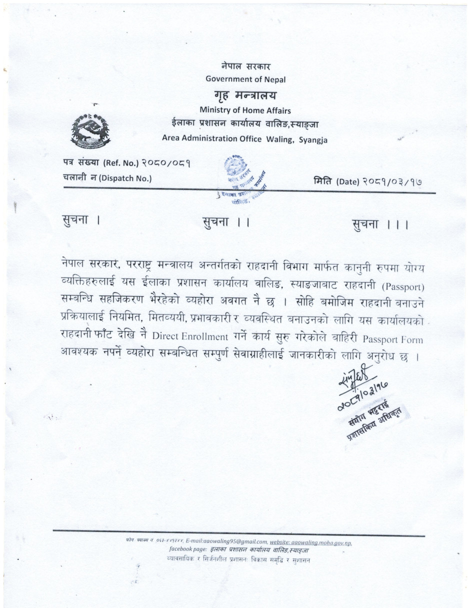 © सर्वाधिकार सुरक्षित ईलाका प्रशासन कार्यालय, वालिङ्ग, स्याङ्जा .